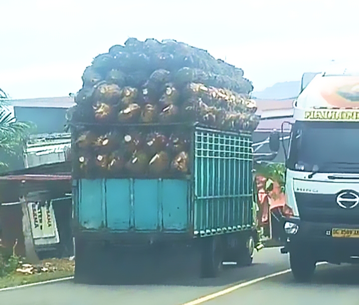Dimana Vidio Postingan warga di salah satu grup watshap,tanpak mobil pemuat Tandan Buah Segar (TBS) melintas di jalan raya hendak menuju salah satu pabrik kelapa sawit di Mamuju tengah dengan kapasitas muatan membumbung tinggi atau over load.